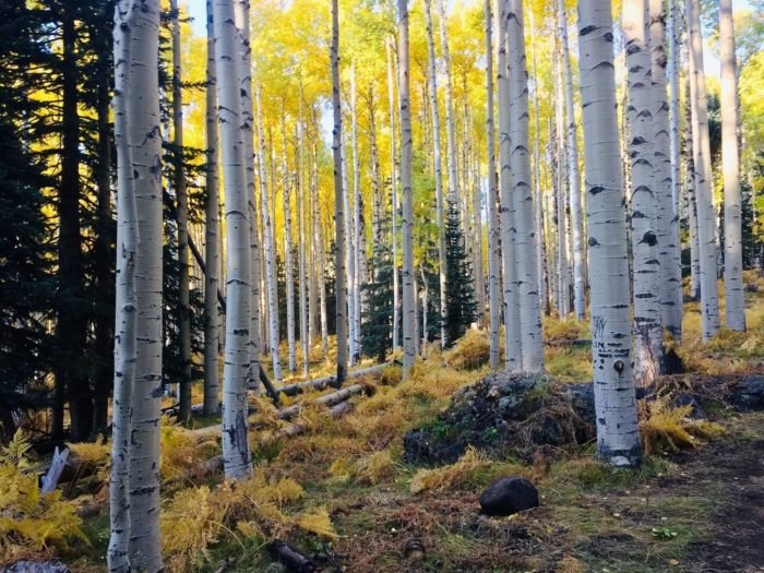 1. Aspen Nature Lollipop Trail (Flagstaff) At just under three miles long, this easy, short-and-sweet trail is one of the most iconic fall destinations in Arizona. You haven’t lived until you’ve hiked through a grove of brilliantly yellow aspens! You’ll find the trail on the western slope of the San Francisco Peaks near the Snowbowl.