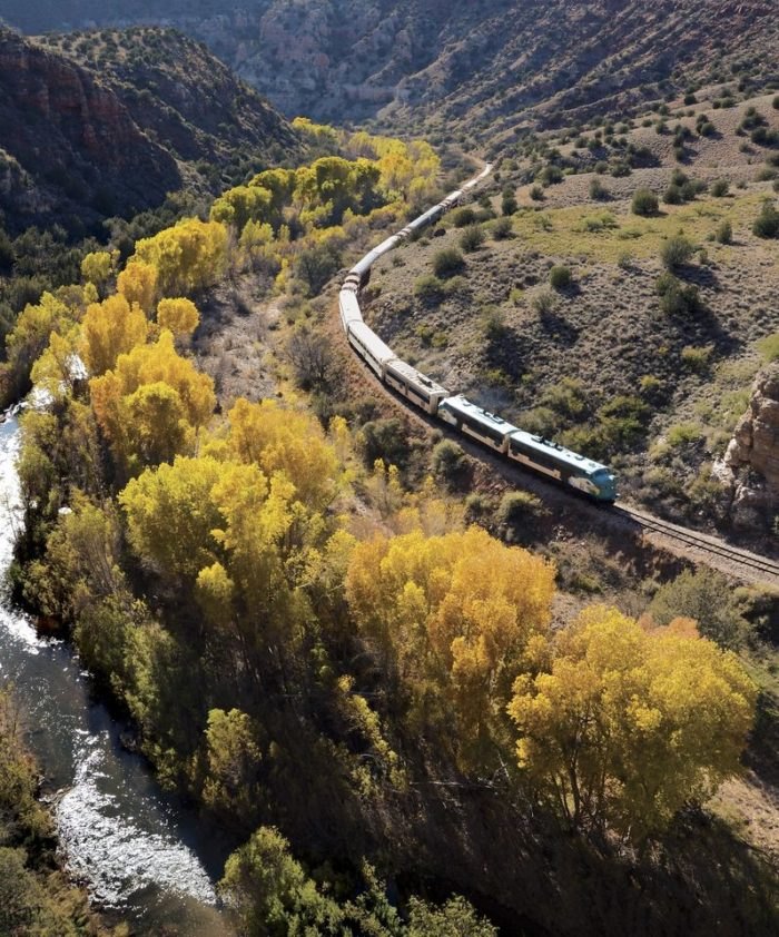 2. Verde Canyon Railroad (Clarkdale) Each fall, the Verde Canyon Railroad holds their ever-popular Fall Colors Tour. On board a historic train car, you’ll whiz past eye-popping foliage that offers a stark contrast to the lofty red rocks surrounding them. The ride takes place in October and November.