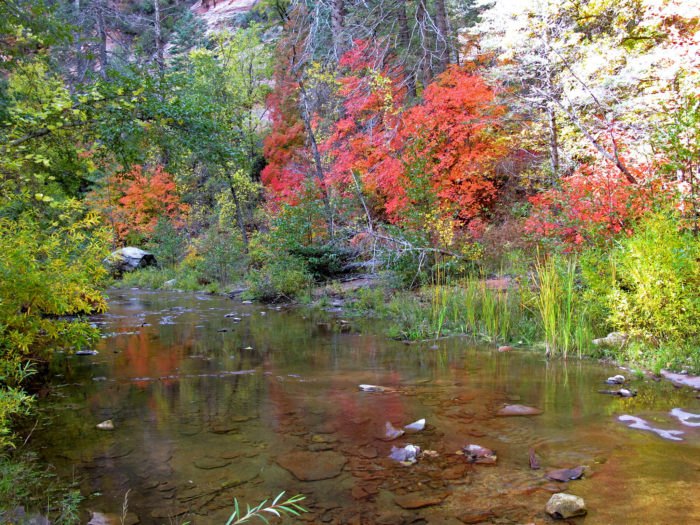 3. West Fork Trail (Sedona) Perhaps even more renowned than the Aspen Nature Lollipop Trail is West Fork Trail. This 7.2-mile adventure features some of the most striking fall colors across the entire state, in a vast array of breathtaking colors. You’ll find the trailhead 11 miles north of Sedona, with an access point at the Call of the Canyon day use area.